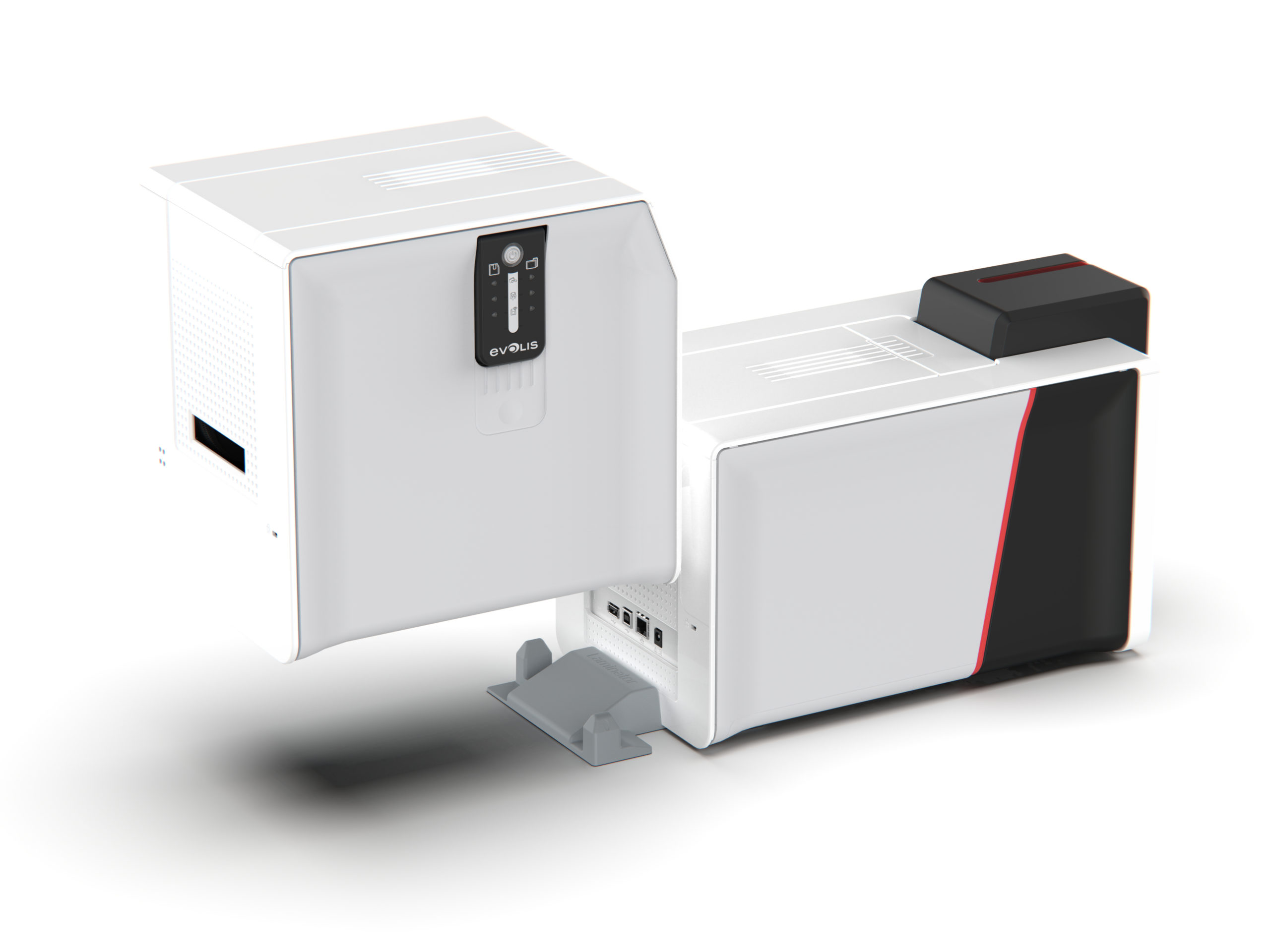 Fonctionnalités & avantagesMultiples fonctionnalités d’impression• Impression bord à bord, recto ou recto-verso*• Sublimation couleur / Transfert thermique monochrome• Technologie Rewrite pour cartes réinscriptiblesImpression performante et autonomie• Jusqu’à 280 cartes par heure (impression couleur, simple face)• Chargeur 100 ou 200 cartes* (chargeur 200 cartes intégrable sur site)• Mode d’impression 300 dpi• Ajustement des couleurs via profil colorimétriqueHaute sécurité et durabilité des cartes émises• Multiples options d’encodage• Impression d’effet UV*• Double couche d’overlay*• Scanner*Module de lamination*Pour des cartes encore plus sécurisées & durables.• Vernis• Patch• Hologrammes génériques ou sur-mesureProtection des données imprimées• Suppression et brouillage des données grâce au digital erasing & au Kineclipse®*• Verrouillage mécanique de l’imprimante par clé*Utilisation intuitive• Panneau LED ou écran LCD* avec affichage de QR code pour aide à l’utilisation• Evolis Premium Suite avec expérience utilisateur optimisée sur Windows, Mac & Linux• Impression depuis smartphone et tablette• Logiciel de personnalisation de cartes CARDPRESSORobustesse• Tête d’impression avec protection renforcée• Garantie 3 ansDesign épuré• Esthétisme élégant intemporel• Taille compacteUne gamme complète de consommablesLes consommables Evolis High Trust vous garantissent une qualité d’impression et une durée de vie optimales de votre imprimante.Avec un large choix de cartes, rubans et kits de nettoyage, vous êtes sûr de trouver le produit adapté à votre besoin.Notre sélection– Ruban YMCKOO : une double couche d’overlay, pour une double protection.- Des rubans en cassette pour une installation en un seul geste, ou une offre EASY4PRO sans cassette pour les utilisateurs avertis qui souhaitent réduire leur impact environnemental. Spécificités techniques CARACTÉRISTIQUES GÉNÉRALES∙ Sublimation couleur directement sur la carte et transfert thermique résine∙ Impression de cartes réinscriptibles∙ Module d’impression simple ou double face∙ Résolution d’impression :- En couleur et monochrome : 300×300 dpi & 300×600 dpi- En monochrome : 300×1200 dpi∙ Optimisation des impressions via profil colorimétrique∙ Interface utilisateur : panneau LED ou écran tactile LCDVITESSE D’IMPRESSION∙ Simple face (YMCKO) : jusqu’à 280 cartes/heure∙ Double-face (YMCKOK) : 170 cartes/heure∙ Simple face (YMCK) avec module de lamination : jusqu’à 215 cartes/heureGESTION ET CARACTÉRISTIQUES DES CARTES∙ Capacité du chargeur : 100 cartes (0,76 mm – 30 mil)∙ Capacité du réceptacle : 100 cartes (0,76 mm – 30 mil)∙ Capacité du réceptacle arrière : 50 cartes (0,76 mm – 30 mil)2∙ Types de cartes : cartes PVC, cartes PVC composite, cartes PET, cartes ABS et carte réinscriptiblePORTS / CONNECTIVITÉ∙ USB (câble fourni) et Ethernet∙ Connexion sans fil 802.11b/g sur gamme WirelessRUBANS EVOLIS HIGH TRUST®Afin de maximiser la qualité et la durée d’utilisation des cartes imprimées, la durée de vie de la tête d’impression etla performance globale de l’imprimante, utilisez des rubans Evolis High Trust®.∙ Reconnaissance et paramétrages automatiques∙ Des rubans en cassette pour une installation en un seulgeste, ou une offre EASY4PRO sans cassette pour lesutilisateurs avertis qui souhaitent réduire leur impactenvironnemental.- YMCKO : 300 impressions par rouleau- YMCKOK : 200 impressions par rouleau- YMCKOO : 250 impressions par rouleau- Noir monochrome : 2000 impressions par rouleauLAMINATION∙ Simple et double face en standard∙ Offre de laminats étendue : patches (600 faces par rouleau) et vernis (1200 faces par rouleau), avec ou sans hologramme,laminats alternés (découpe puce contact / découpe piste magnétique).OPTIONS INTÉGRABLES SUR SITE∙ Clé d’activation double face∙ Chargeur de 200 cartes∙ Ecran tactile LCD∙ Module de laminationSÉCURITÉ∙ Verrou de sécurité de type Kensington®∙ Système de verrouillage mécanique en option∙ Protection de la tête d’impression lors d’opération de maintenance ou de changement de ruban∙ Effacement des données sensibles de la mémoire de l’imprimante∙ Kineclipse® en option∙ Lecteur scanner interne en optionMODULES D’ENCODAGE– Encodeur piste magnétique ISO 7811- Encodeurs carte à puce contact- Encodeurs carte à puce contactless- Encodeurs carte à puce dual (contact / contactless)∙ Options combinables entre elles∙ Montage usine ou sur siteLOGICIEL∙ Gestion de l’imprimante par Evolis Premium Suite pour Windows, Mac et Linux∙ Evolis SDK disponible pour une intégration facile des produits∙ Fourni avec cardPresso XXS pour la conception et l’impression des badgesCONDITIONS DE GARANTIE∙ 3 ans pour l’imprimante∙ Extension de garantie disponible en option