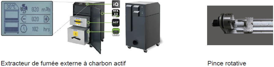 | Equipements auxiliaires | Ventilateurs d’extraction et pipe d’échappement |